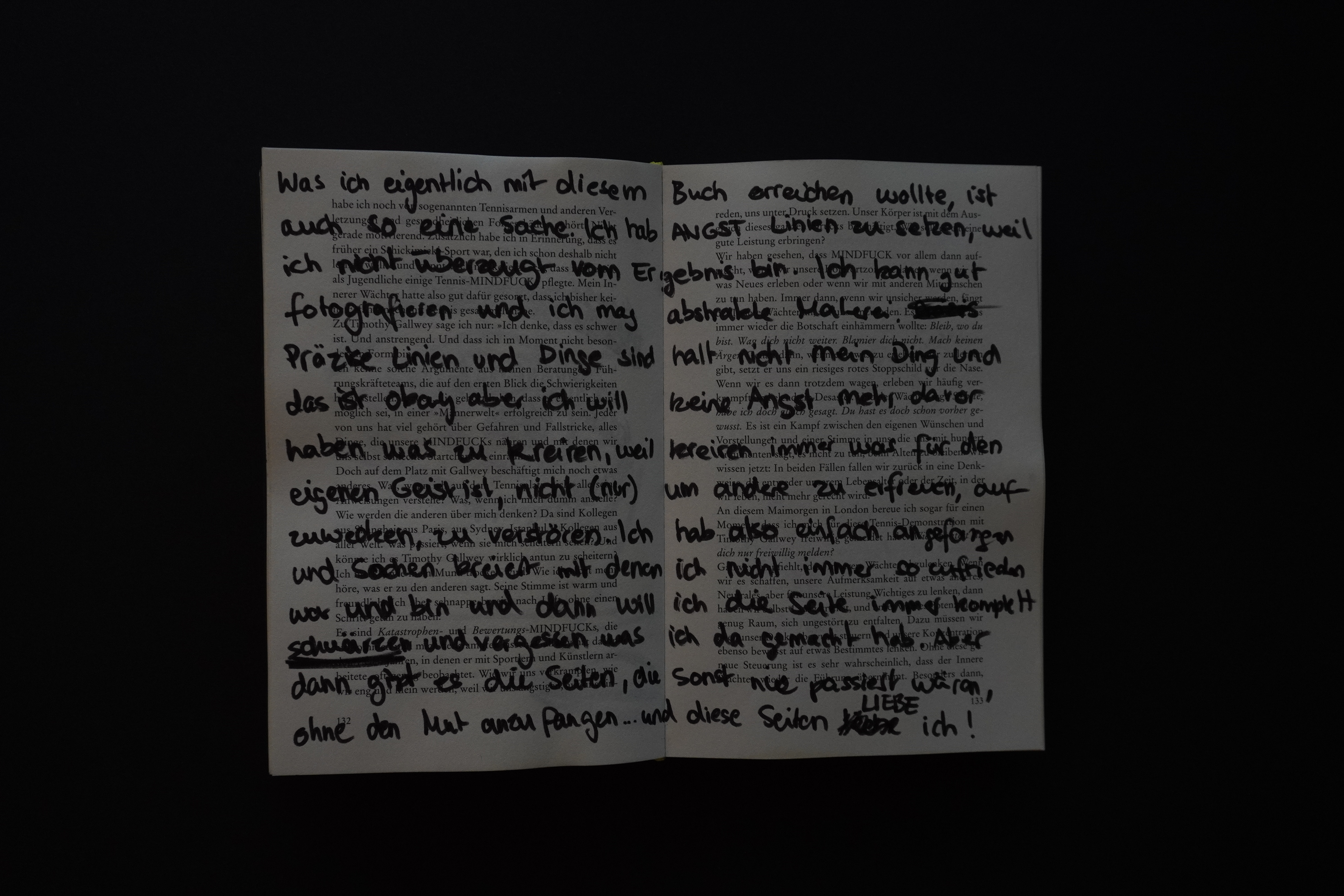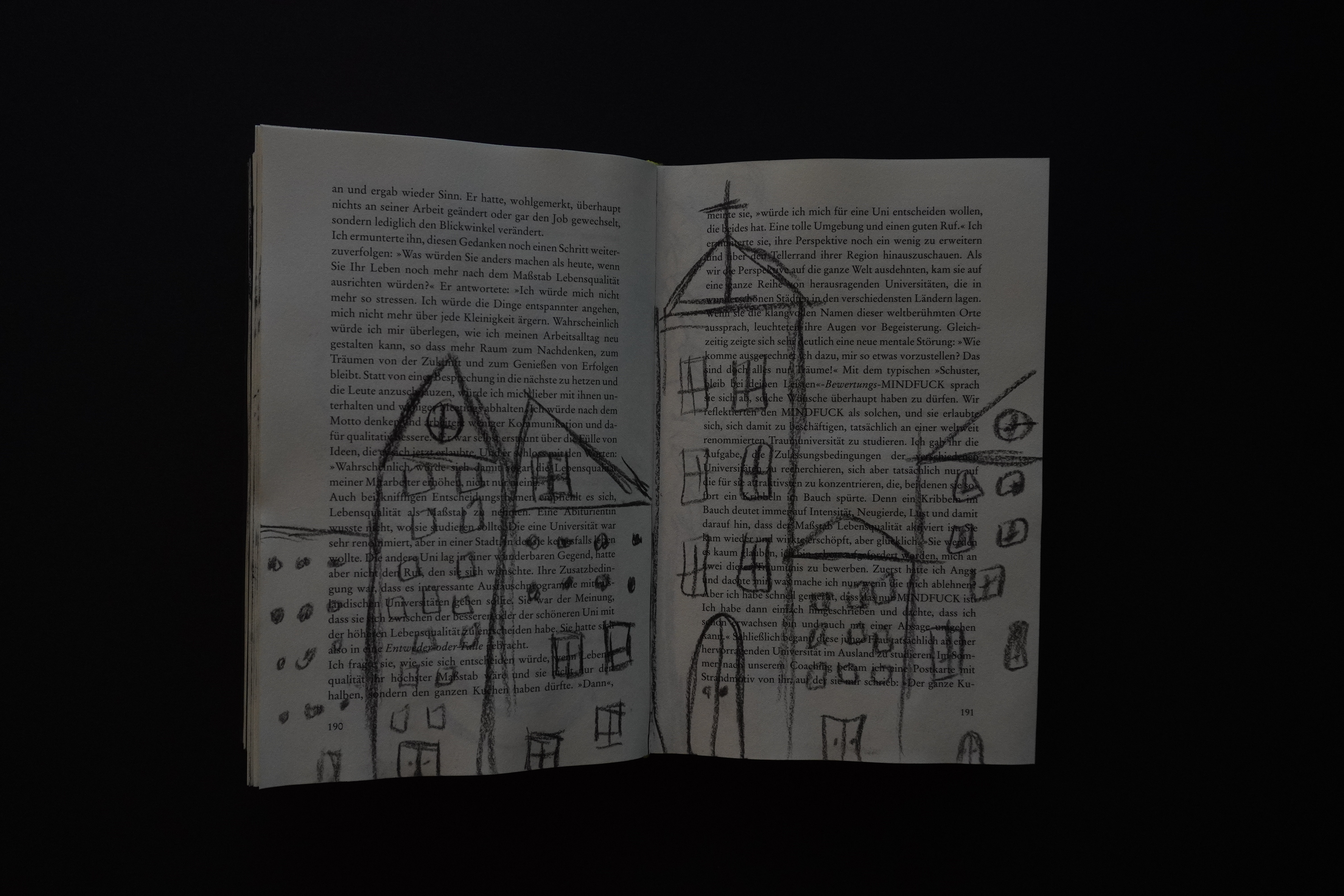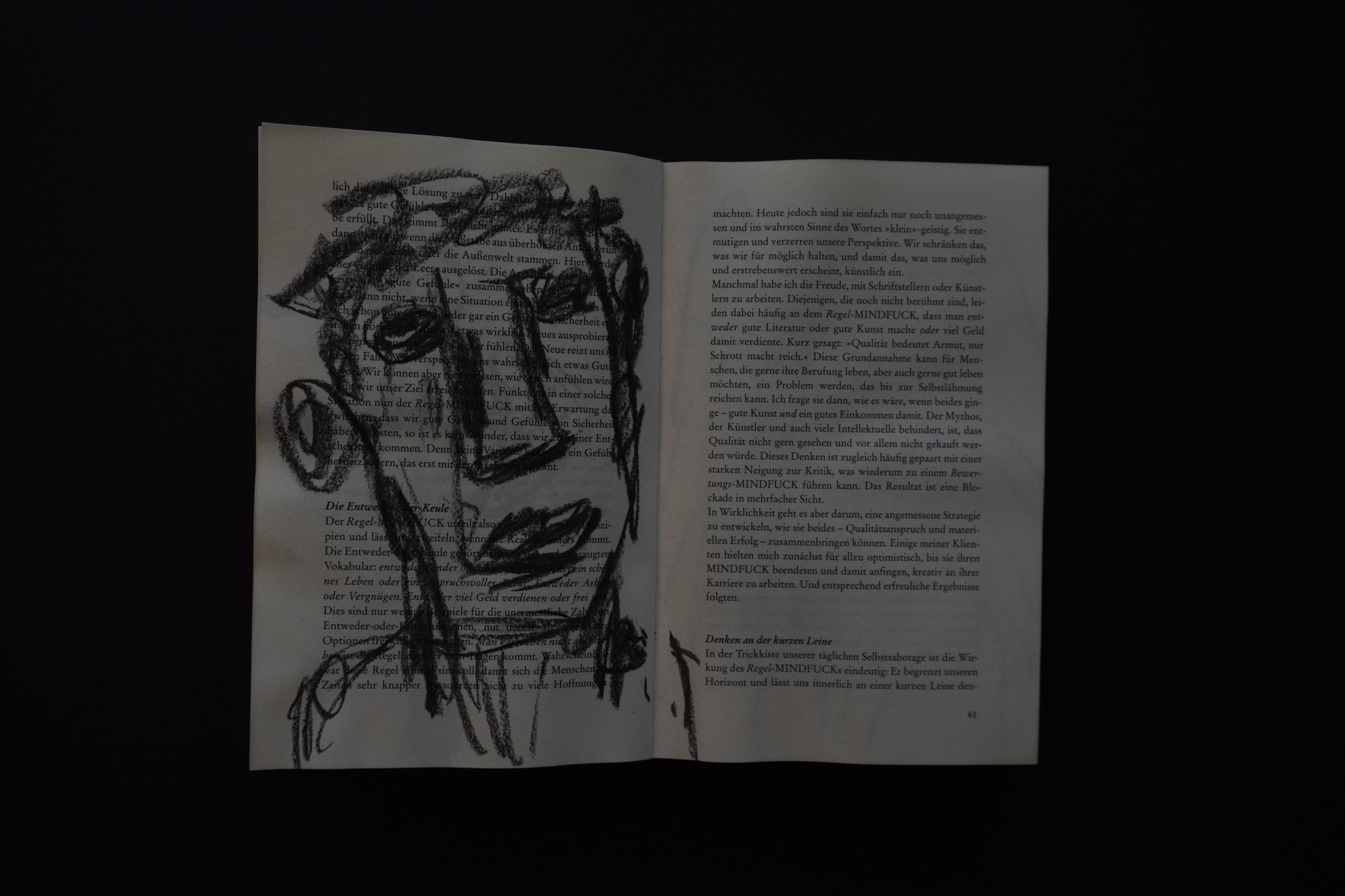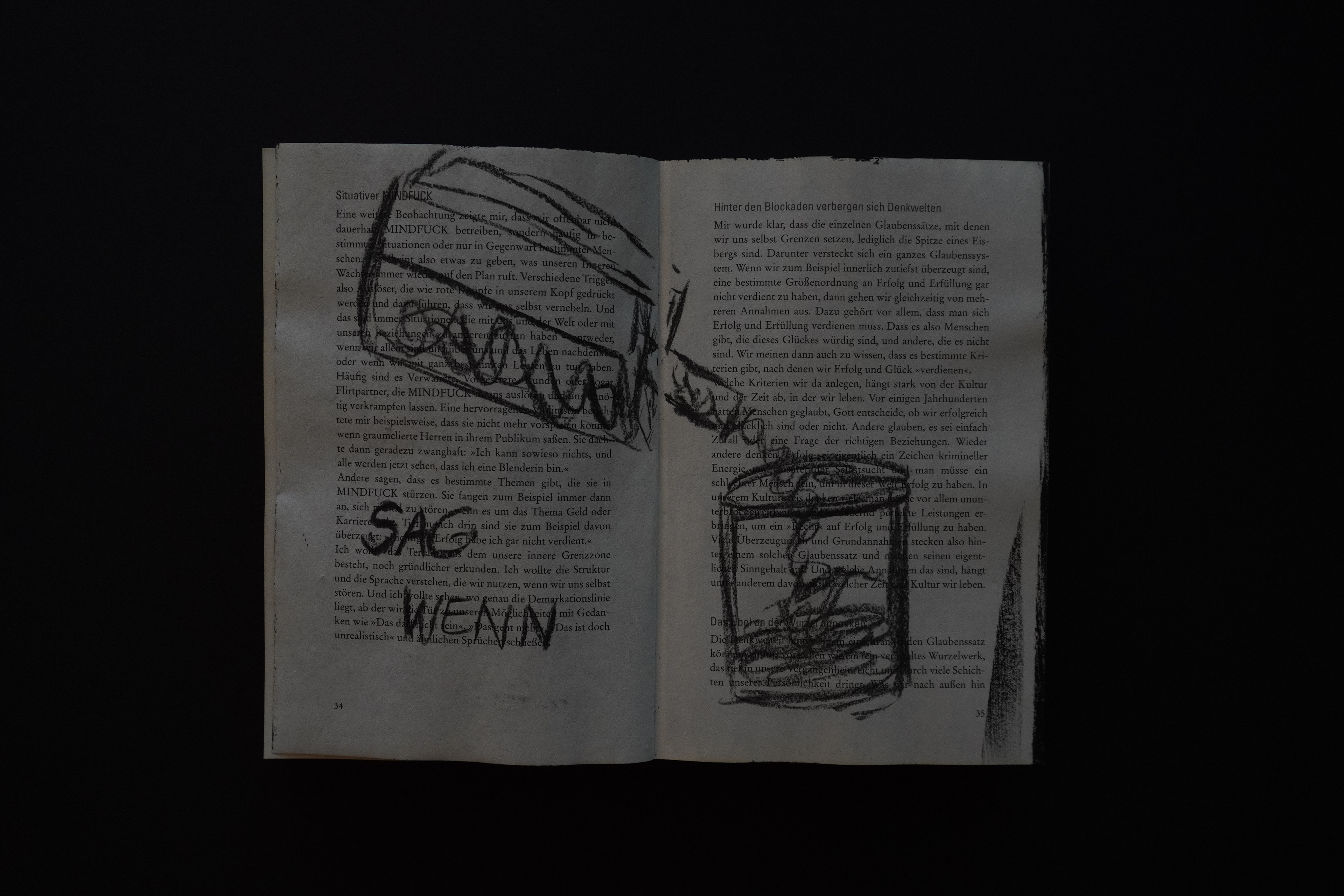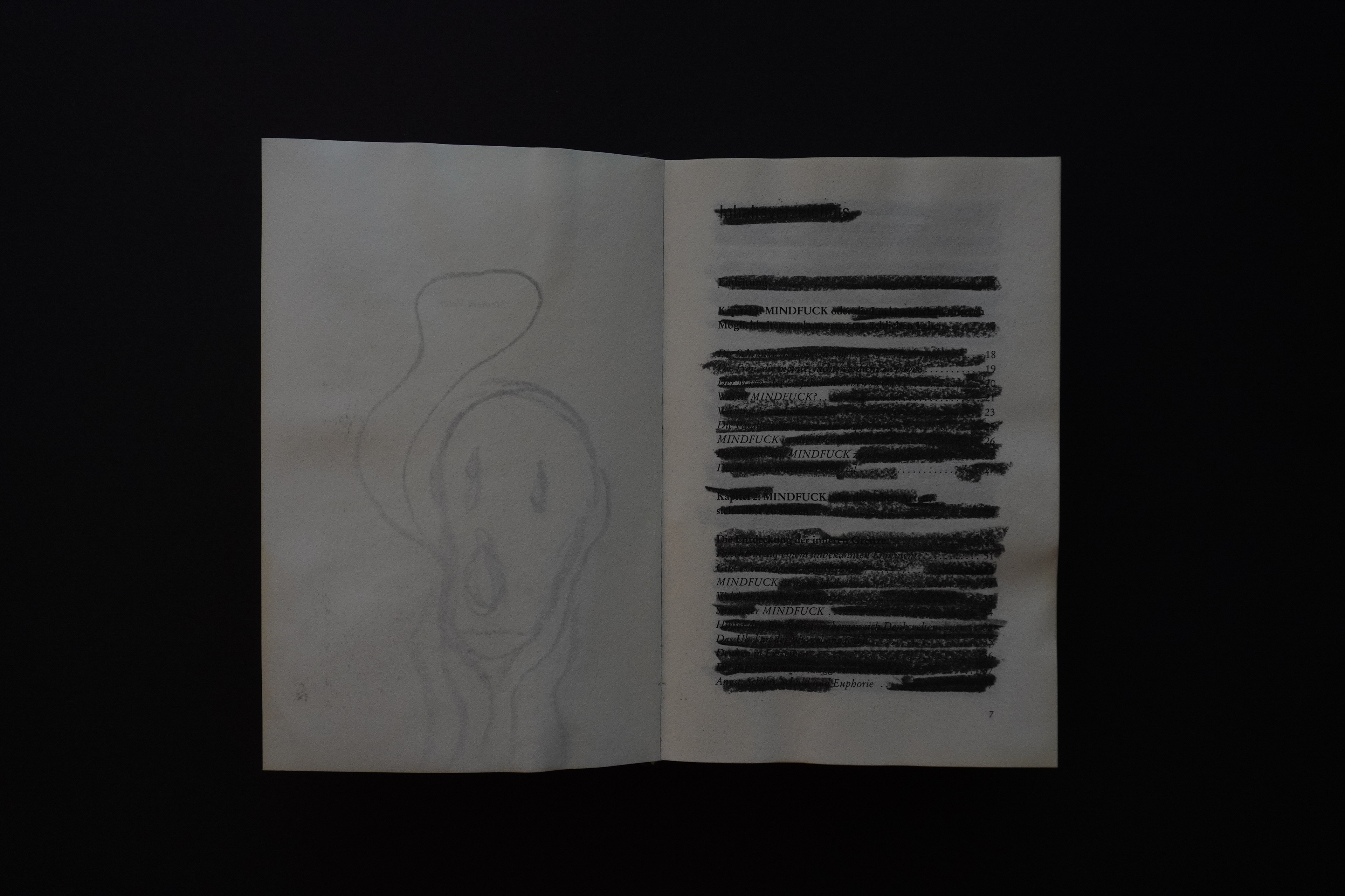 Die Illustrationsarbeit MINDFUCK entstand im Zeitraum von Juni bis Juli 2022 im Zuge eines Illustrationskurses. Die Angst vor dem weißen Blatt Papier und der Kohle in der Hand, sie scheint einen zu lähmen. 250 Seiten in kurzer Zeit zu füllen bedeutet diese Angst los lassen zu müssen. Wenn dir die Seite nicht gefällt, schlägst du sie um und startest von vorne. Weiter und weiter, bis die Angst vor dem Beginnen immer kleiner wird.